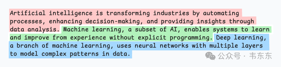 注:两个段落(紫色)被识别为初始块,接着第一个段落再被拆成更小的块。这种方式既保留了语义完整性,又能灵活控制分块大小。