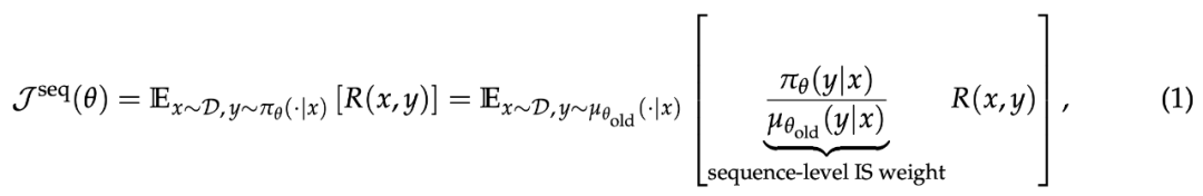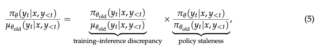 其中 π_θ 是目标策略。由于模型生成响应通常并非在训练引擎(如 Megatron、FSDP)中完成,而是在推理引擎(如 SGLang、vLLM)中进行,团队采用重要性采样(IS)来完成等价的变换: