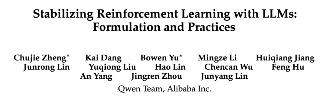 - 论文标题:Stabilizing Reinforcement Learning with LLMs: Formulation and Practices