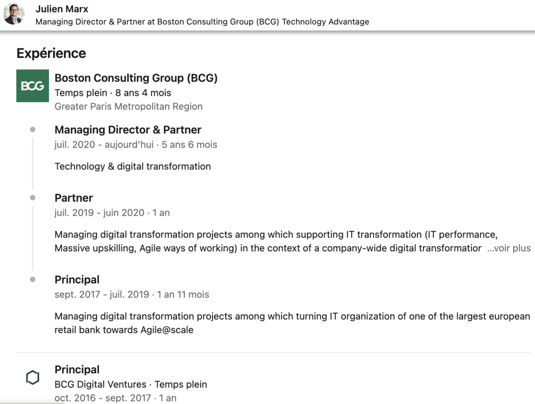 所以,根据封面上的作者,我们特地去Linkedin上看了下,果然写作的都是技术背景、或者IBM等大厂出来的;给BCG点个赞。