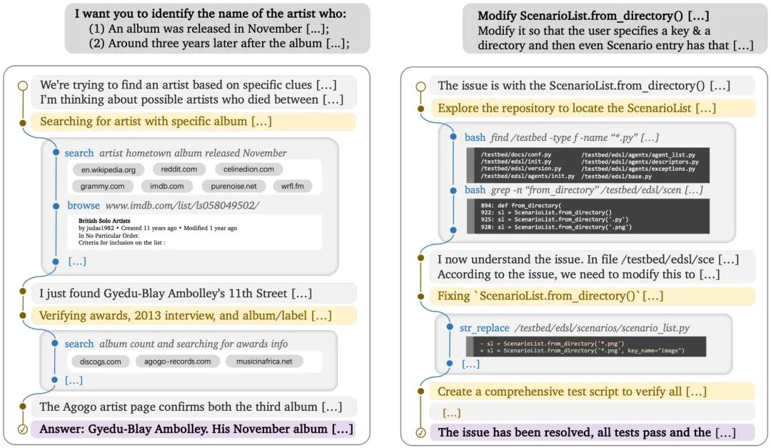 在 BrowseComp-Plus(Deep Research)与 SWE-Bench Verified (软件工程)两大长时任务上: