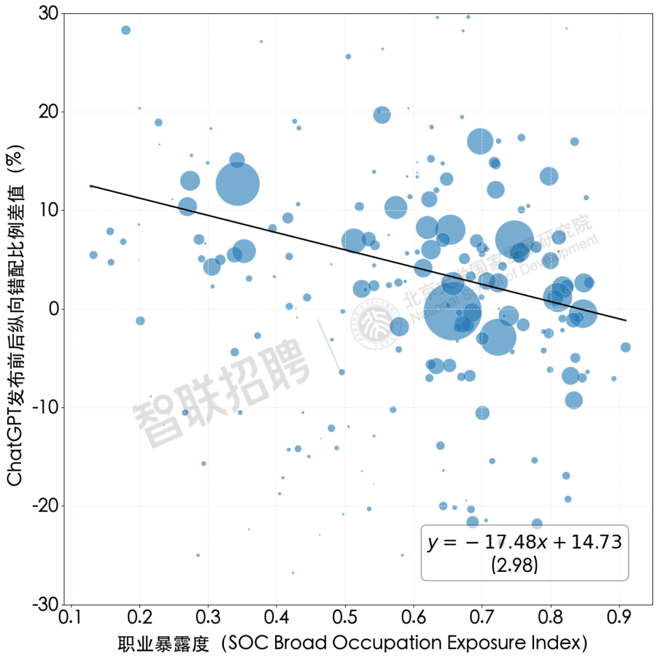 图 10:职业纵向错配比例的变动与AL-LLM暴露度的散点图