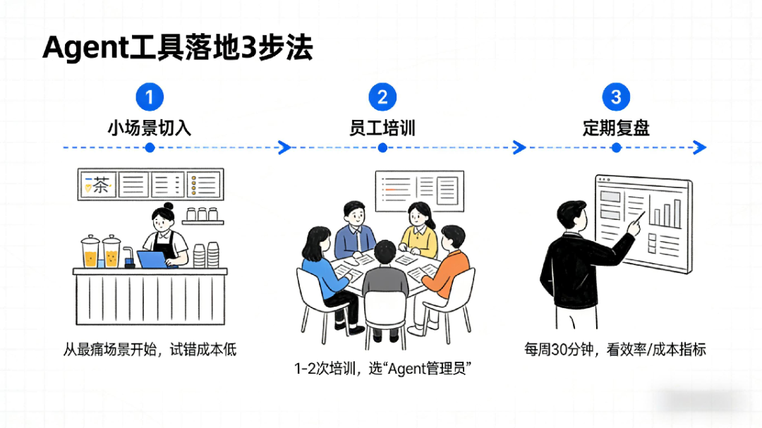 选对了工具,不代表就能用得好。很多中小企业把工具买回来,因为落地方法不对,最后还是闲置。分享3个简单有效的落地步骤,帮你快速让Agent工具产生价值。