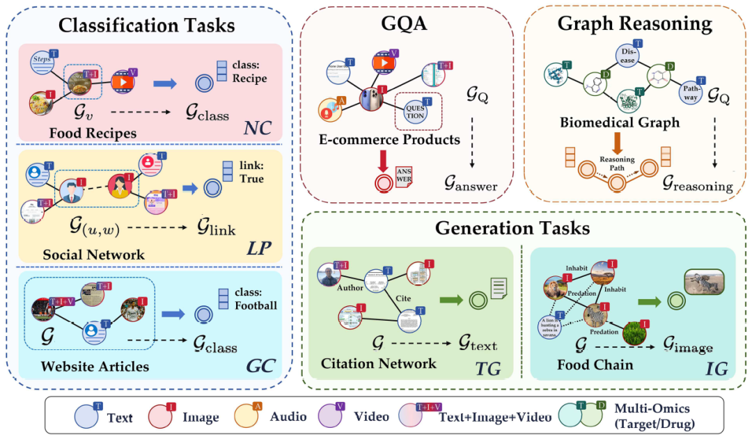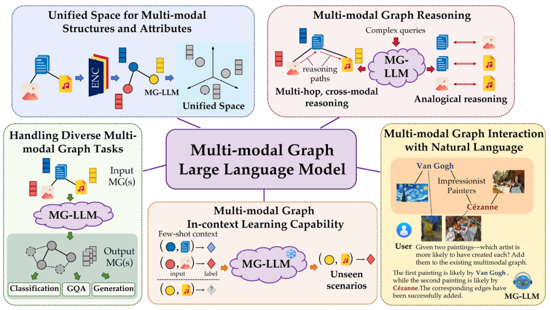- 以及具备多模态图推理能力,能够跨越不同模态进行多跳推理与复杂逻辑判断,从而为通用多模态图智能奠定基础。
