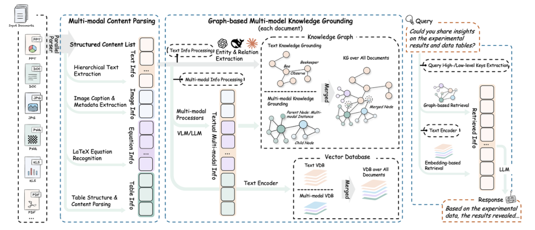 - 黑科技原理:CLIP 跨模态对齐。利用 CLIP 模型将文本和图像映射到同一个向量空间。无需 OCR 转文字,系统可以直接用“文字”检索到“图片”,并将图片直接喂给 GPT-4o 或 LLaVA 等多模态大模型进行理解。