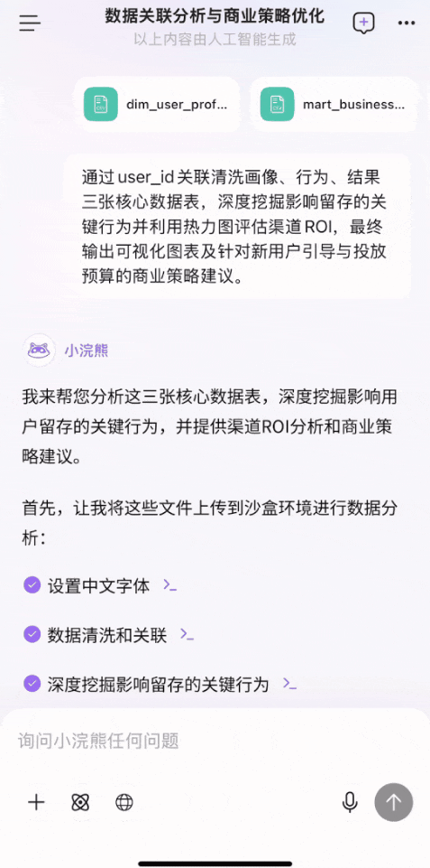 随即,小浣熊进入思考与规划模式,自动构建了从「数据清洗」到「策略制定」的全链路分析闭环。