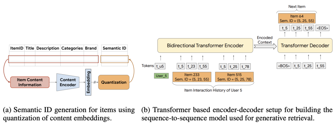 因此,如何实现商品ID化表示,是实现基于LLM的生成式检索第一个挑战,也是核心步骤,下面我们以谷歌的Tiger模型为案例学习一下他们是怎么解决这个问题的。