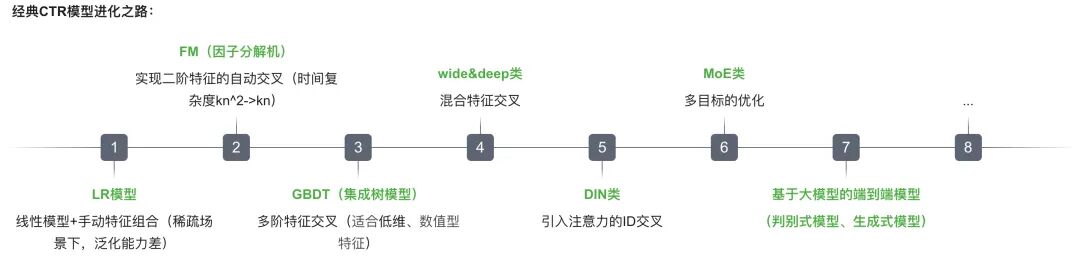 | 特征 模型化 | 轻特征,重模型: 阿里派,使用简单的特征,使用复杂的模型,例如 DIE模型:在模型内引入自注意力等模型结构,完成各种特征交叉… |