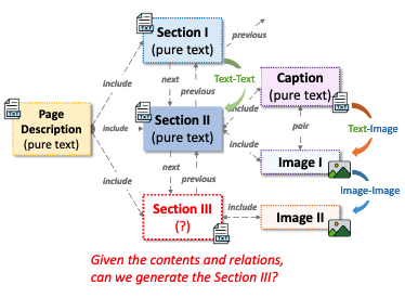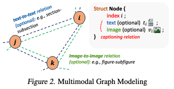 图1。文档中的多模态关系,其中章节、图像、字幕和页面描述形成了一个结构化的图。