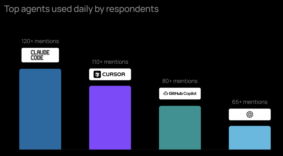 最常被提及的智能体是代码助手。受访者多次表示,Claude Code、Cursor、GitHub Copilot、Amazon Q、Windsurf、Antigravity 等工具已成为其日常开发流程的一部分,无论是用于代码生成、调试、测试创建,还是浏览大型代码库。