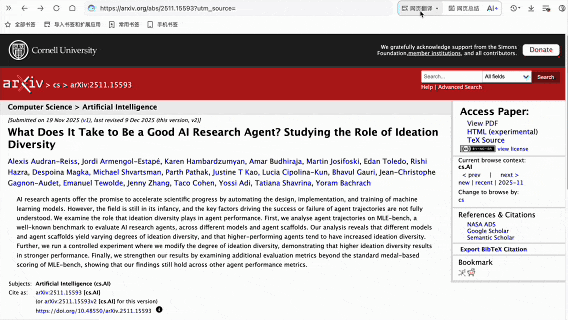 好巧不巧,这个问题QQ浏览器也想到了,AI+小窗的「网页翻译」可以直接把网页中的英文秒变中文,我随手拿篇arxiv论文试了试,一键翻全篇,比我们自己逐句啃单词轻松太多了…