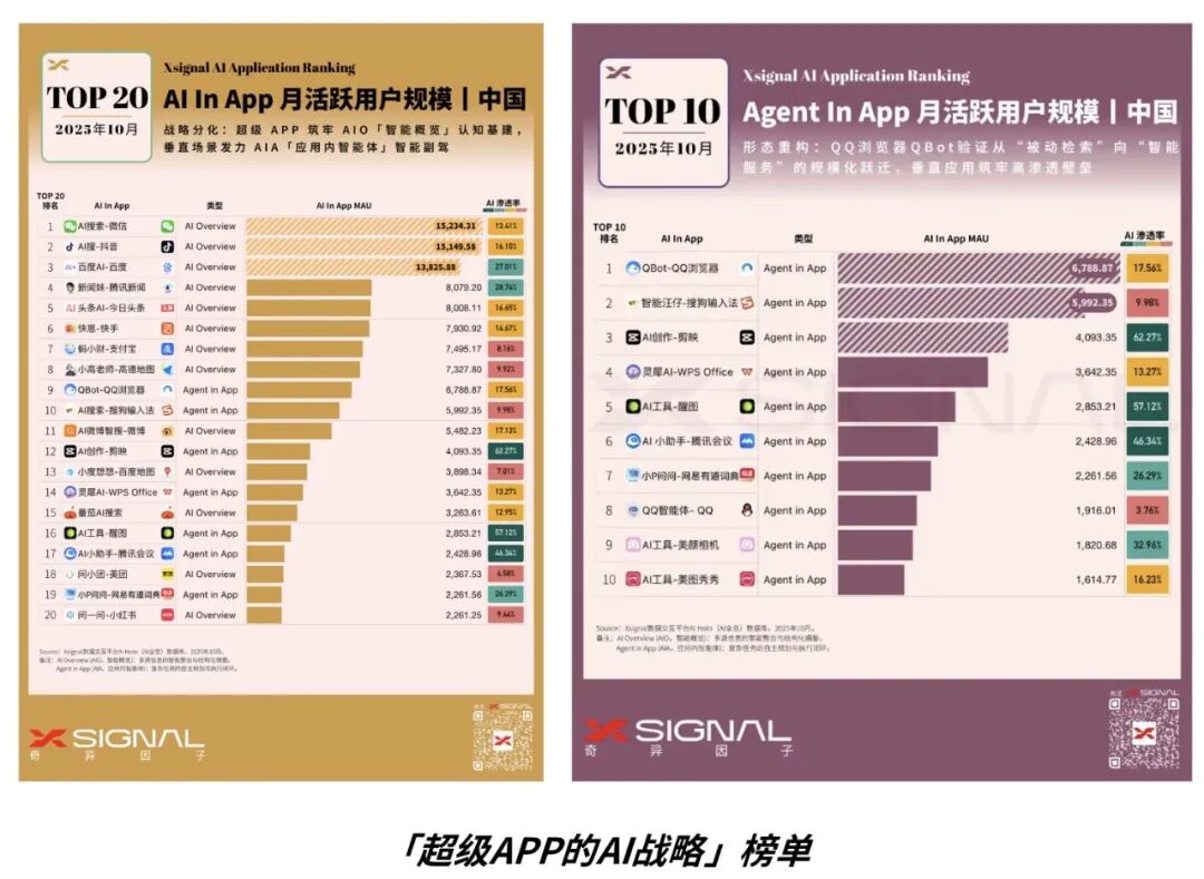 就在刚刚,它更是冲上了数据机构XSignal的多项权威榜单,在「AI Agent」赛道上,其相关数据表现已率先跑进行业前排:
