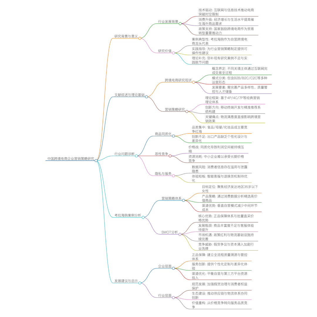但…光会生成没用,能生得好才行。于是我把思维导图一展开,发现研究背景、文献综述,到问题、案例、建议等核心部分都涵盖到了,而且层级能自动拆到三级,排版清晰,没有乱行,这样一来阅读成本大大降低: