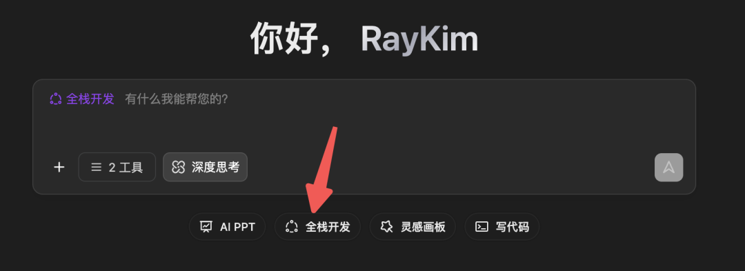 首先值得注意的是,现在在z.ai上搞开发,最好是点开**“全栈开发”**的按钮: