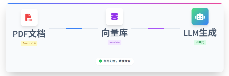 在文档切片入库时,千万别只存文本。一定要利用向量数据库的 <font style="color:rgb(0, 0, 0);">Metadata</font> 字段,把文件名(source)“焊死”在每一个切片上。