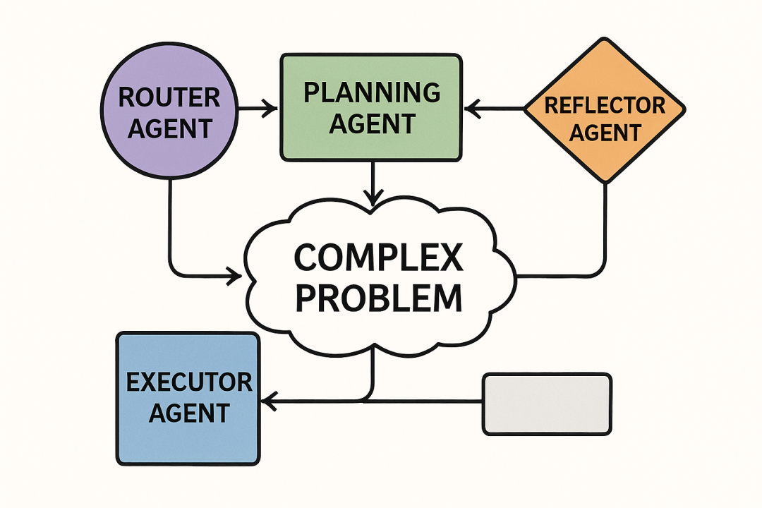 Agentic RAG 的架构是动态且灵活的,它打破了传统RAG的线性流程,采用多智能体协作的模式来处理任务。一个典型的Agentic RAG系统通常包含以下几种关键智能体,共同构成一个闭环的工作流程: