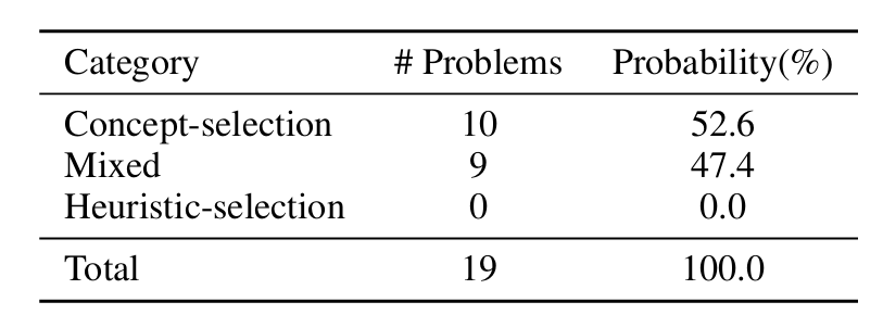 对CORE训练模型成功而基线模型失败的问题进行分析,揭示了一个清晰的模式。如表4详述,在这些案例中超过半数(52.6%被归类为纯概念选择),CORE模型在其推理中明确调用并正确应用了目标数学概念,而基线模型则没有。