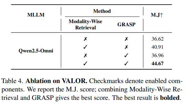 模态感知检索和GRASP 剪枝两者结合效果最好: