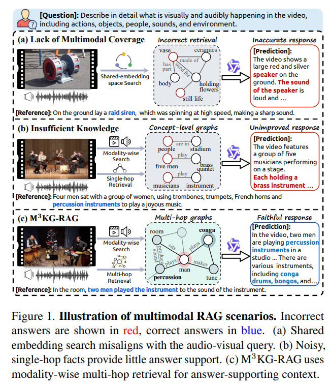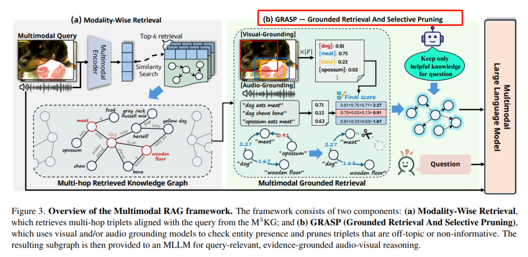 M3KG-RAG 是一个创新的端到端多模态 RAG 框架,通过构建多跳多模态知识图谱(M3KG)和提出 GRASP 检索策略,显著提升了多模态大模型在音视频问答任务中的推理能力和回答准确性。