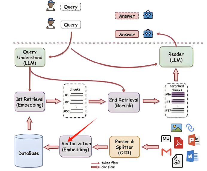 - 为图像、表格、公式等非文本数据生成专属向量(如图像用视觉模型、表格用结构解析模型),与文本向量构建统一索引。