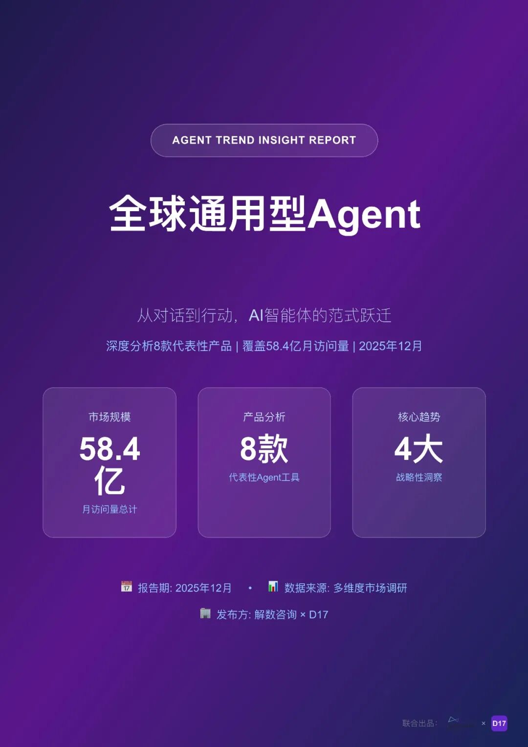 报告指出,通用型 AI Agent 正在重塑数字化工作方式,从简单的对话助手向能够自主规划、执行任务的智能体转变。ChatGPT 以 58.4 亿月访问量主导市场,但 Claude 凭借 26.98% 的最低跳出率展现出最强用户粘性,市场格局呈现明显的分层。报告总结了四大核心趋势:从对话到行动,Agent 能力实现本质跃迁,能够自主完成任务闭环;从单一到生态,多模型编排成为标配,集成能力成为核心竞争力;从通用到专精,市场分化为“广度通用”和“场景专精”两大方向;从工具到操作系统,Agent 基础设施诞生,操作系统级玩家将占据价值链顶端。