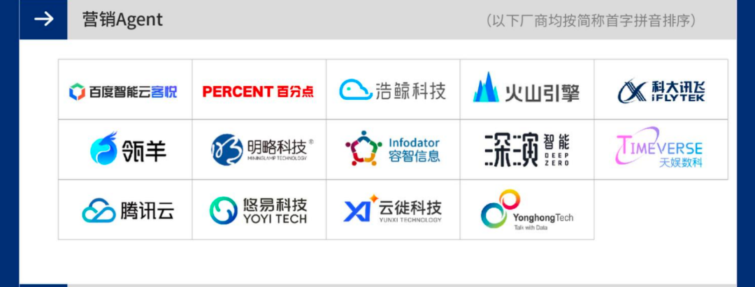 - 深演智能:大小模型融合架构确保 “零幻觉”,Agent 无缝嵌入现有营销系统,形成 10 + 垂直智能体协同矩阵,VOC Agent 可将人工处理量从 10 人缩减至 1 人,服务长安汽车、方太、雀巢等超 800 家企业。