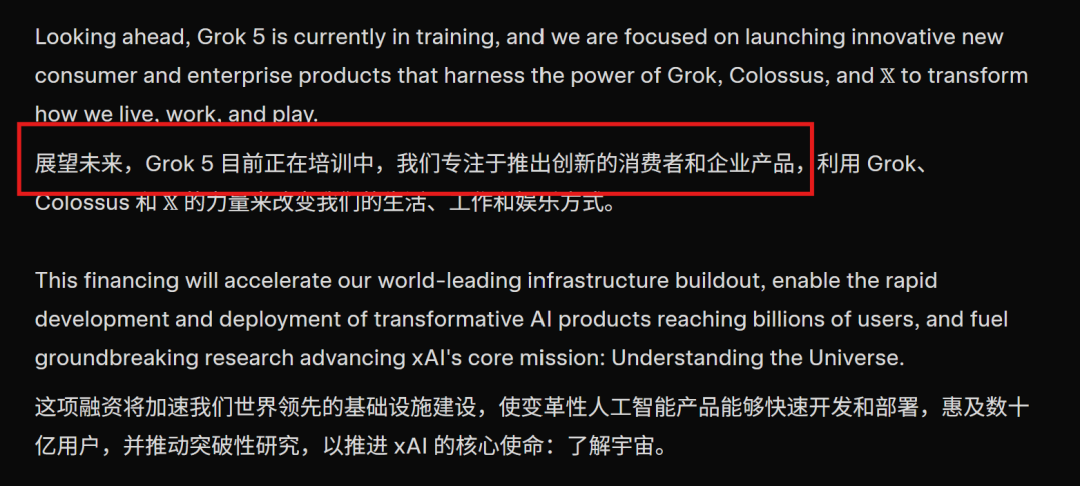 与此同时,公告里也透露,Grok 5正在训练中。