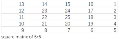 如上,回旋矩阵,左下角(1,1),右上角(n,n),(i,j)位置的价值定义为(i,j)处的数的数位和