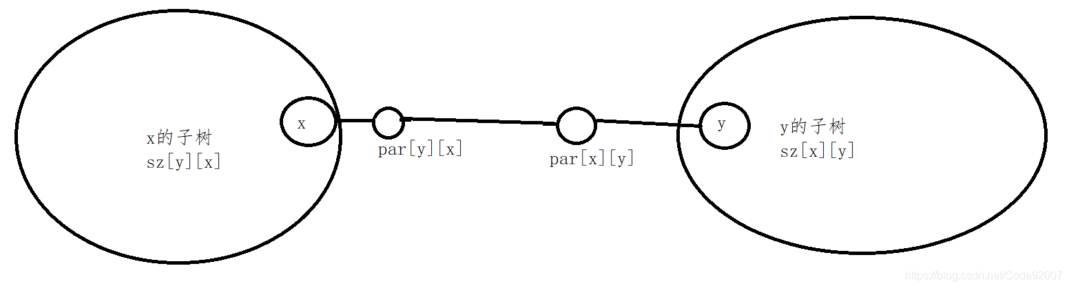 sz[x][y]代表以x为根时y的子树的大小,par[x][y]代表以x为根时y的父亲