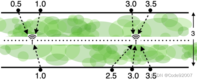 在距两条轴距离相等且平行的线上,标记k(k<=100)个位置点,