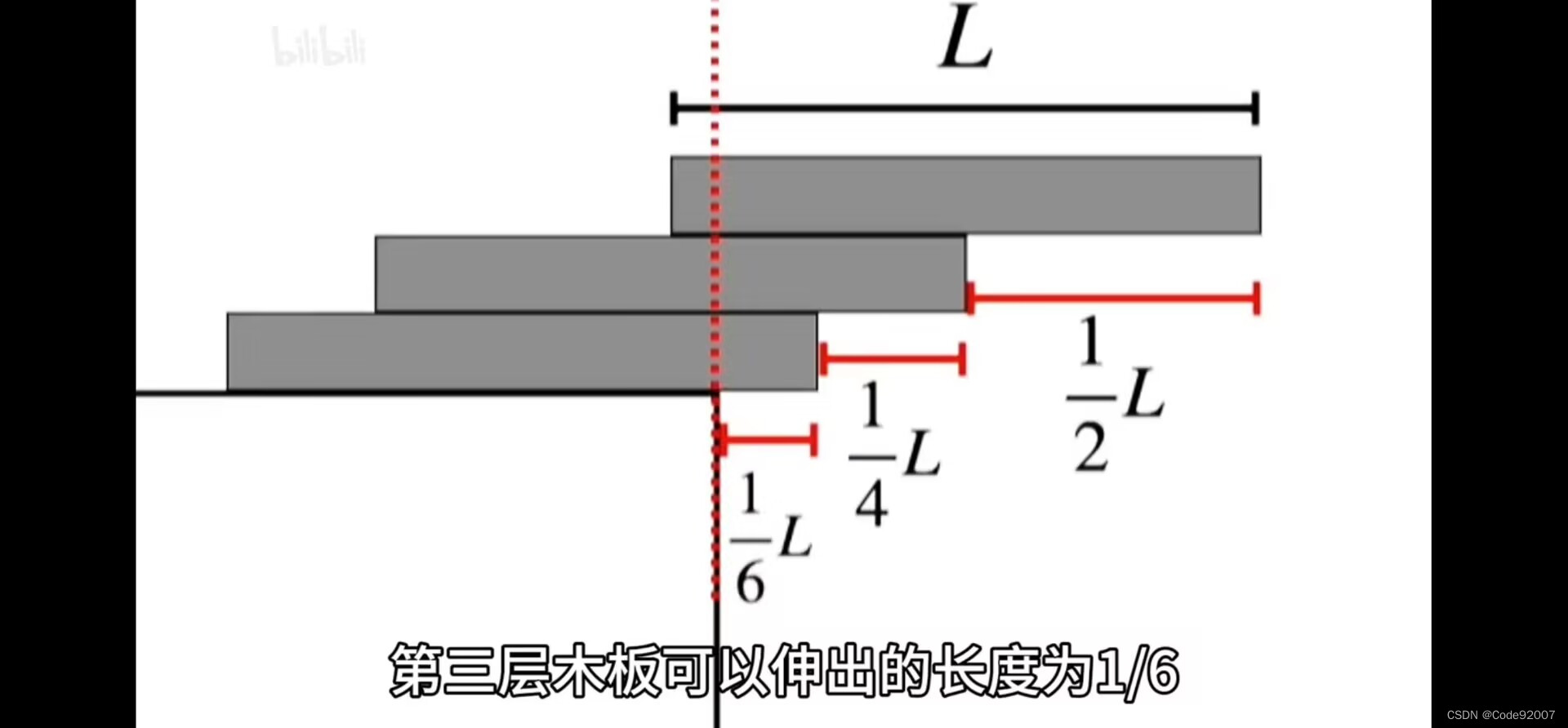 对于j∈[i+1,n]来说,将[1,j-1]看成一体时,[1,j-1]的重心压在j的右边沿