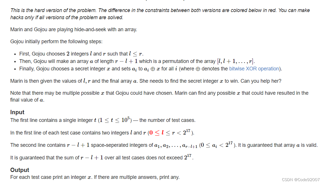 Educational Codeforces Round 157 (Rated for Div. 2) D. XOR Construction (思维题)-优快云博客