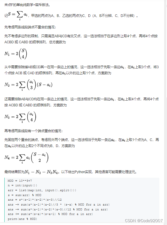 ans -= sum(a*(a-1)*(a-2)*(a-3)//12 % MOD for a in arr)