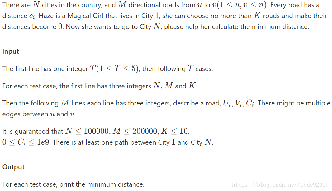 共有k次免费机会,可以将其中k条边的权值变为0,