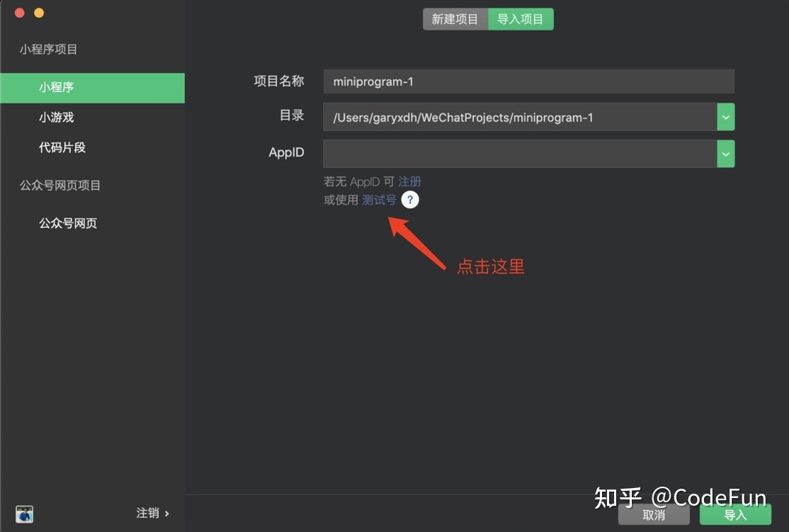 - 在微信开发真工具中导入项目代码,导入时将AppId更换成自己的。