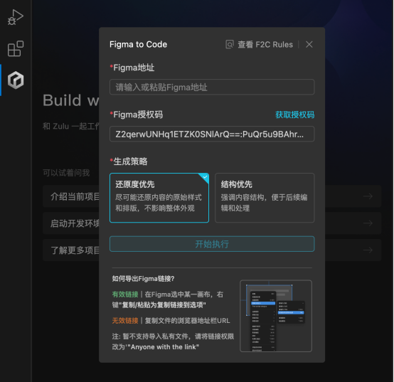 二是更厉害的F2C:如果你有更清晰的流程图设计,比如用专业工具画的,文心快码支持你粘贴F2C的地址和授权码进去。它能直接读取你的流程图结构,理解页面逻辑和跳转关系,然后自动生成更完整、更结构化的前端代码框架。