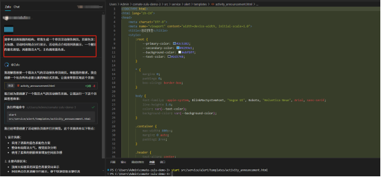 我把同事拍的参考图和自己用画图工具简单画的页面分区示意图,示意图标明了标题区、时间地点区、介绍区、按钮区,一起上传给了文心快码。我告诉它:“请参考这两张图的结构,帮我生成一个单页活动预告网页。页面包含:大标题、活动时间地点分行显示、活动亮点介绍用列表展示、一个醒目的报名按钮。风格简洁大气,主色调用蓝色系。”文心快码的响应很快。它分析了图片里的布局元素,结合我的文字描述,很快生成了我期待的页面。配套CSS样式文件,包含了基础的布局、字体大小、颜色,还给按钮加了个简单的鼠标悬停效果。
