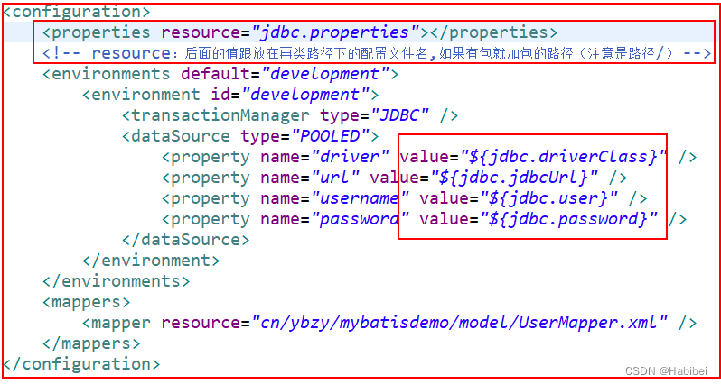 这些属性都是可外部配置且可动态替换的,既可以在典型的 Java 属性文件中配置,亦可通过 properties 元素的子元素来传递。