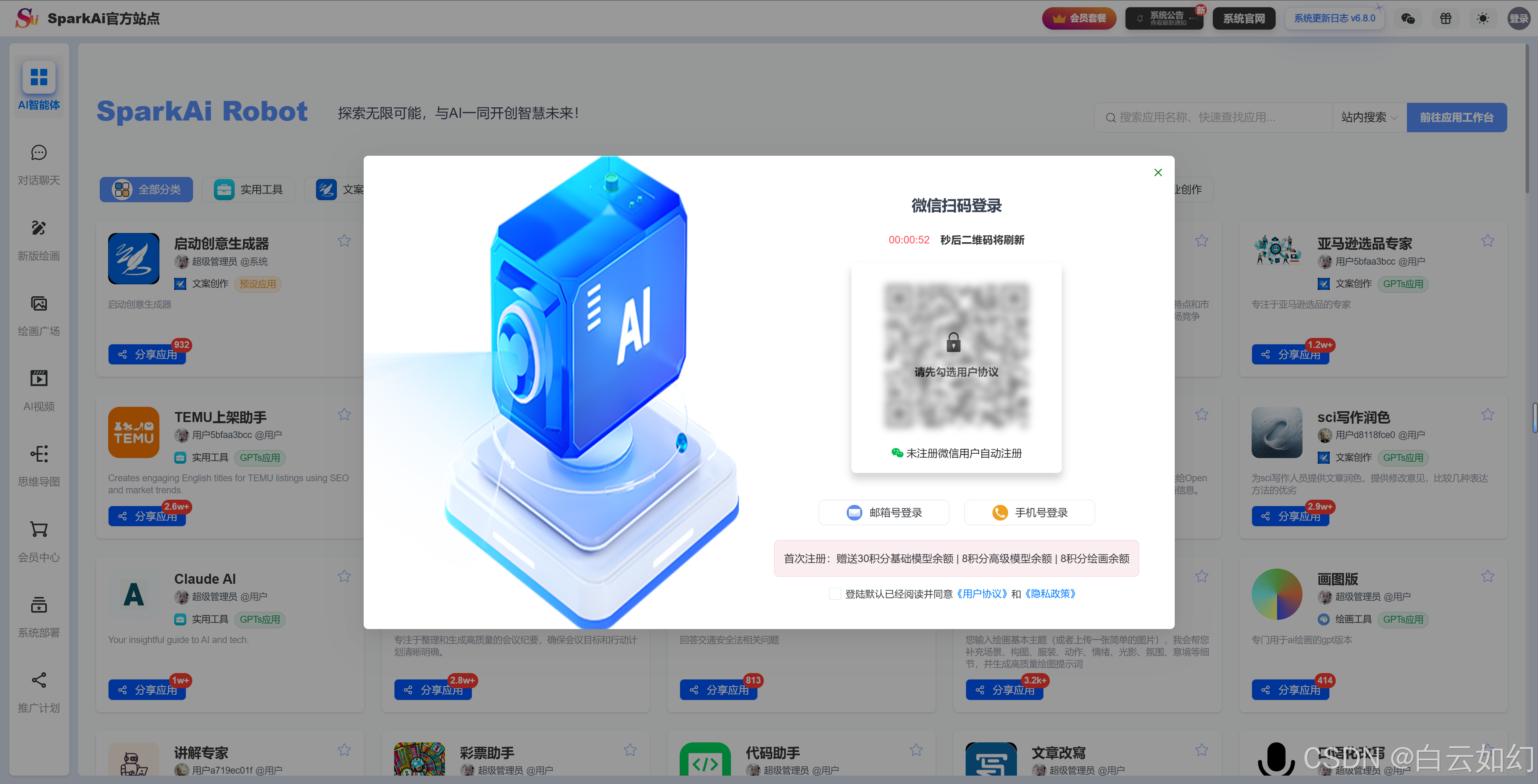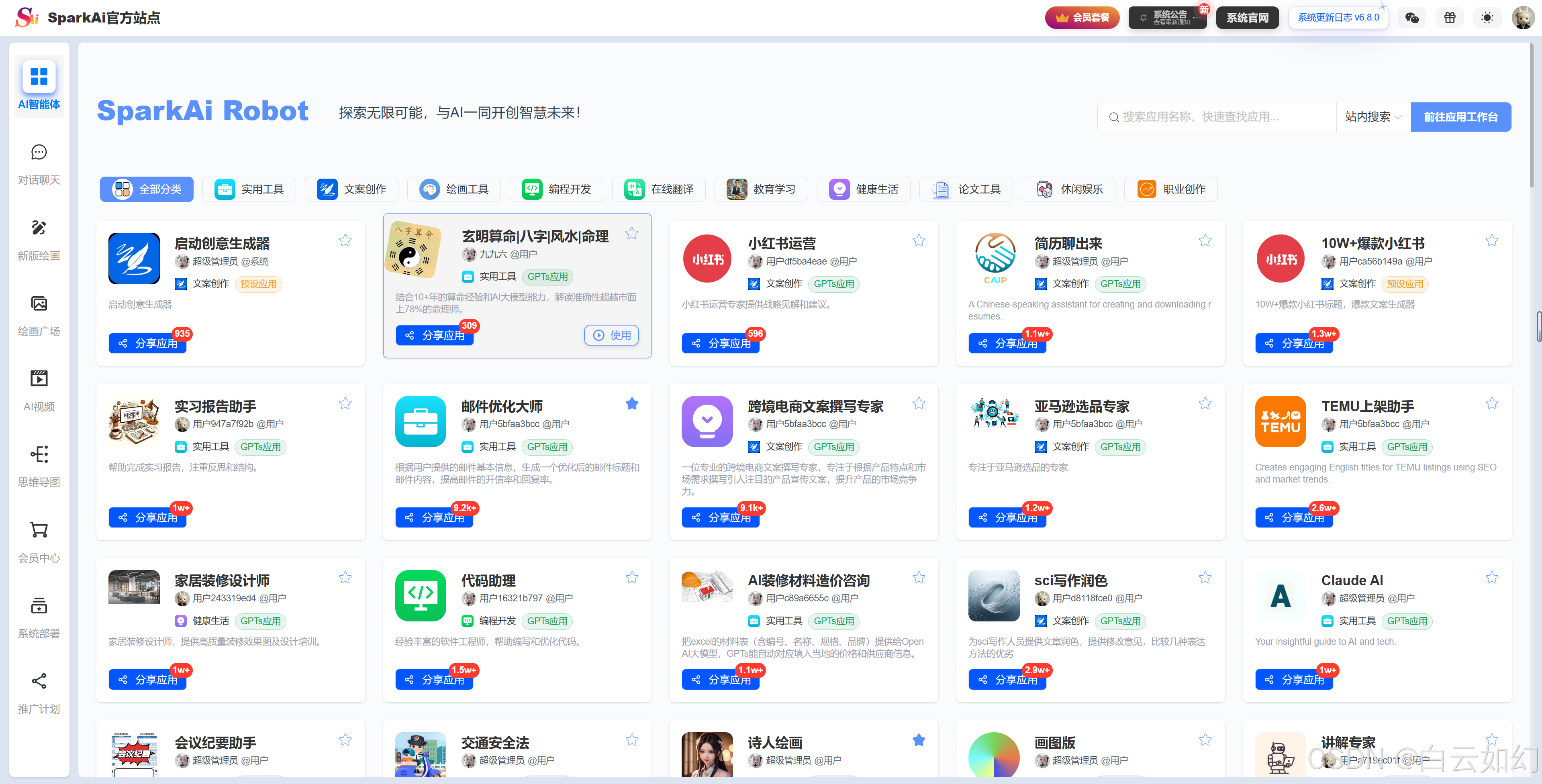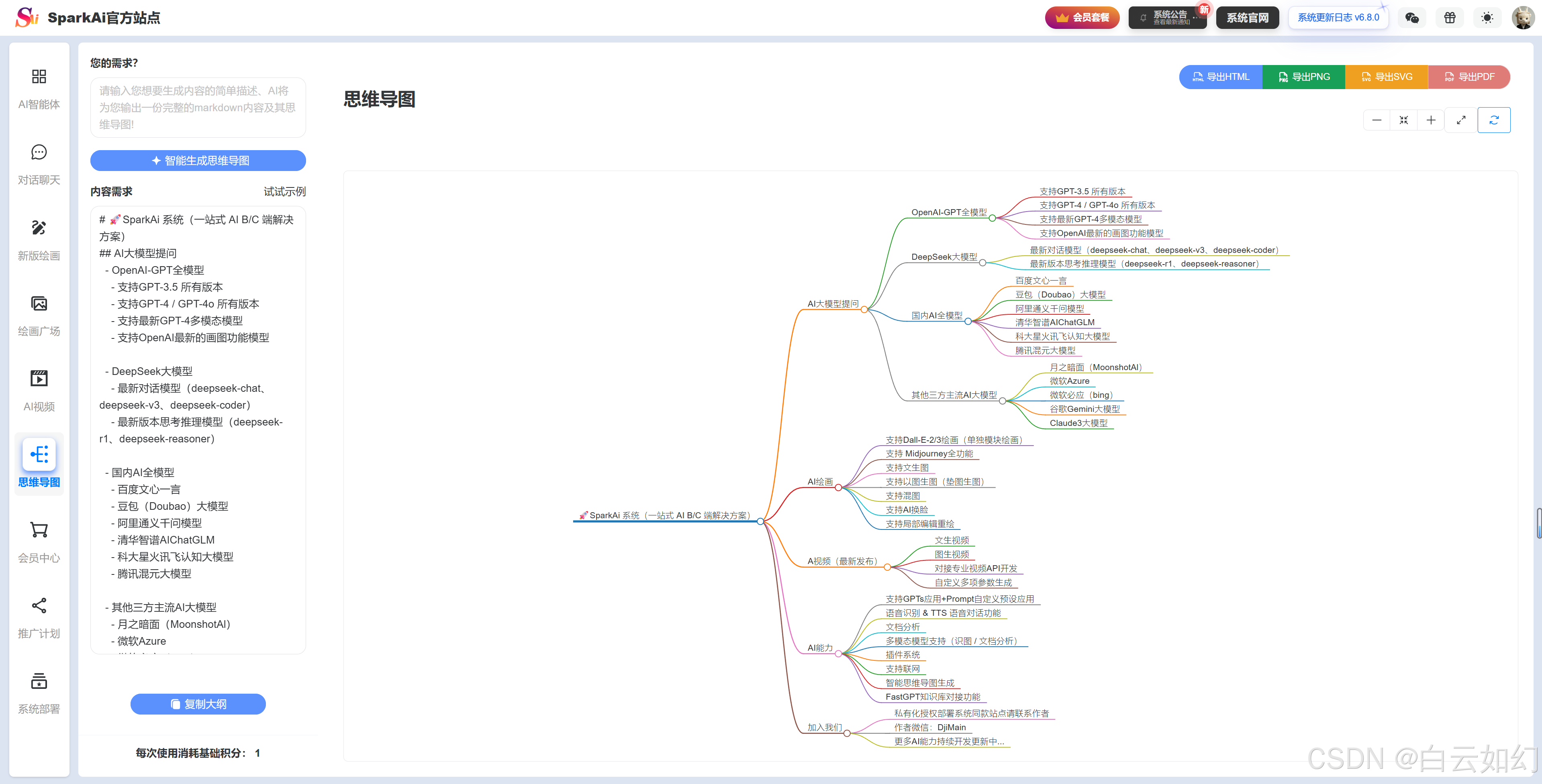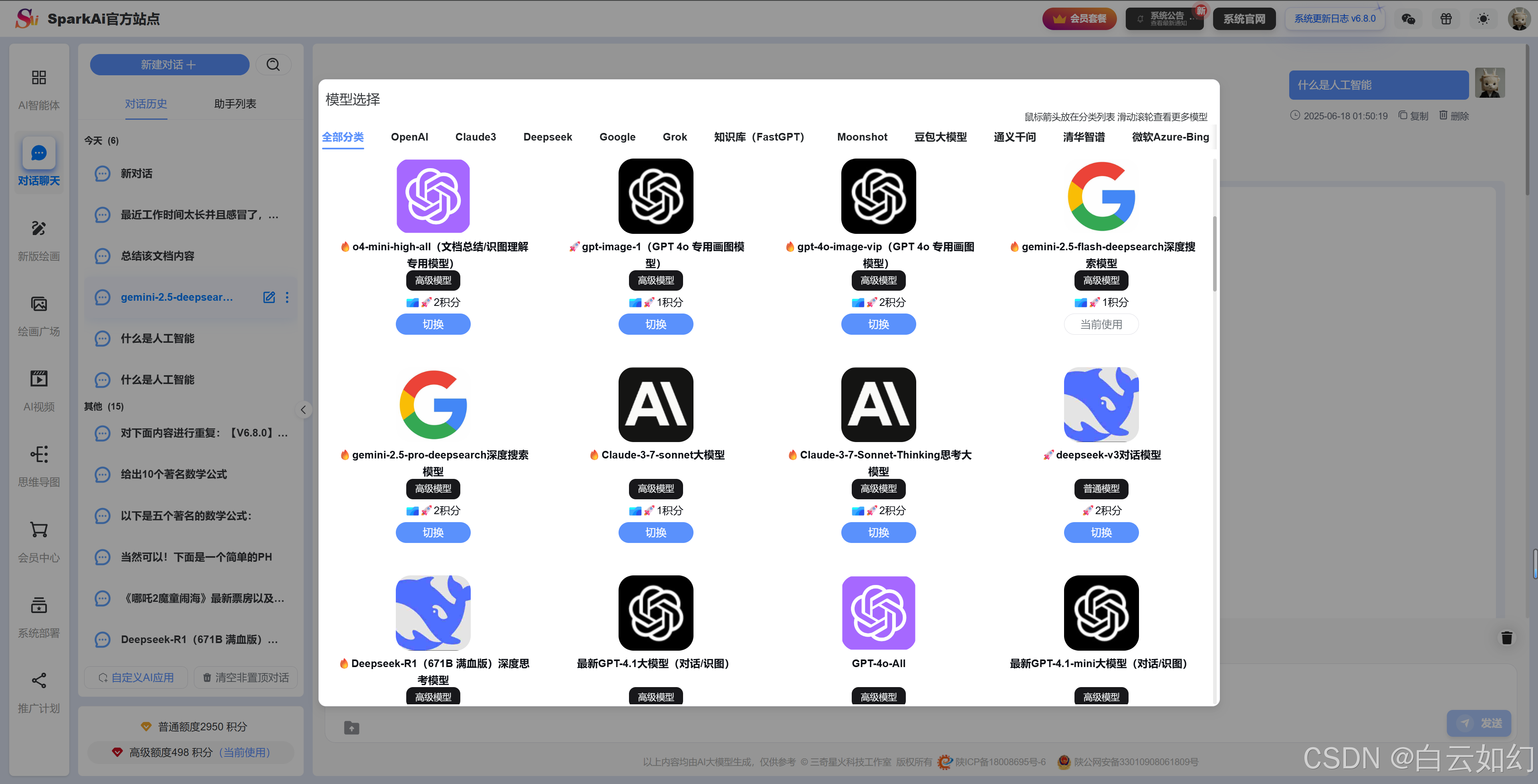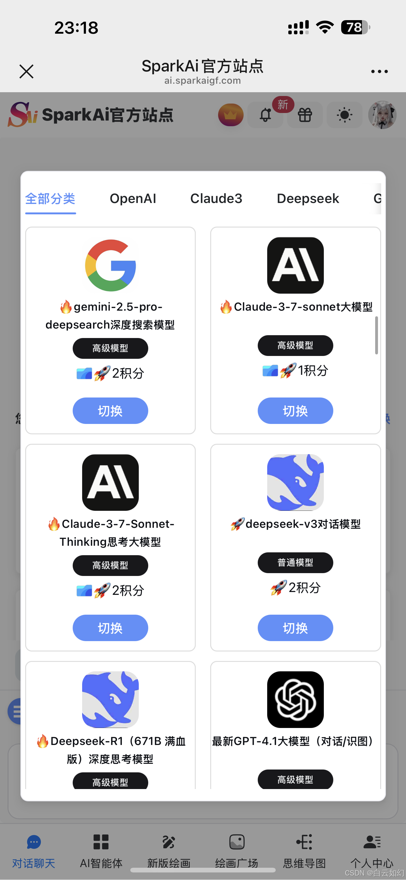 SparkAi创作系统是一款基于OpenAi/ChatGPT、AI大模型、AI智能体(自定义GPTs智能体对接)、AI绘画Midjourney、Dalle绘画开发的AI大模型智能问答和AI绘画系统;支持最新DeepSeek思考推理大模型(独家全天稳定高并发高可用),最新gpt-4o高级画图功能模型(中文文字画图大模型支持),支持deepseek-r1-671B满血版,最新gemini多模态大模型,OpenAI-o1、o3、o4推理、实时联网、深度搜索总结大模型、文档分析使用;claude-3-7大模型。一站式AI系统,提供面向个人用户 (ToC)、开发者 (ToD) 和企业 (ToB) 的全面解决方案。