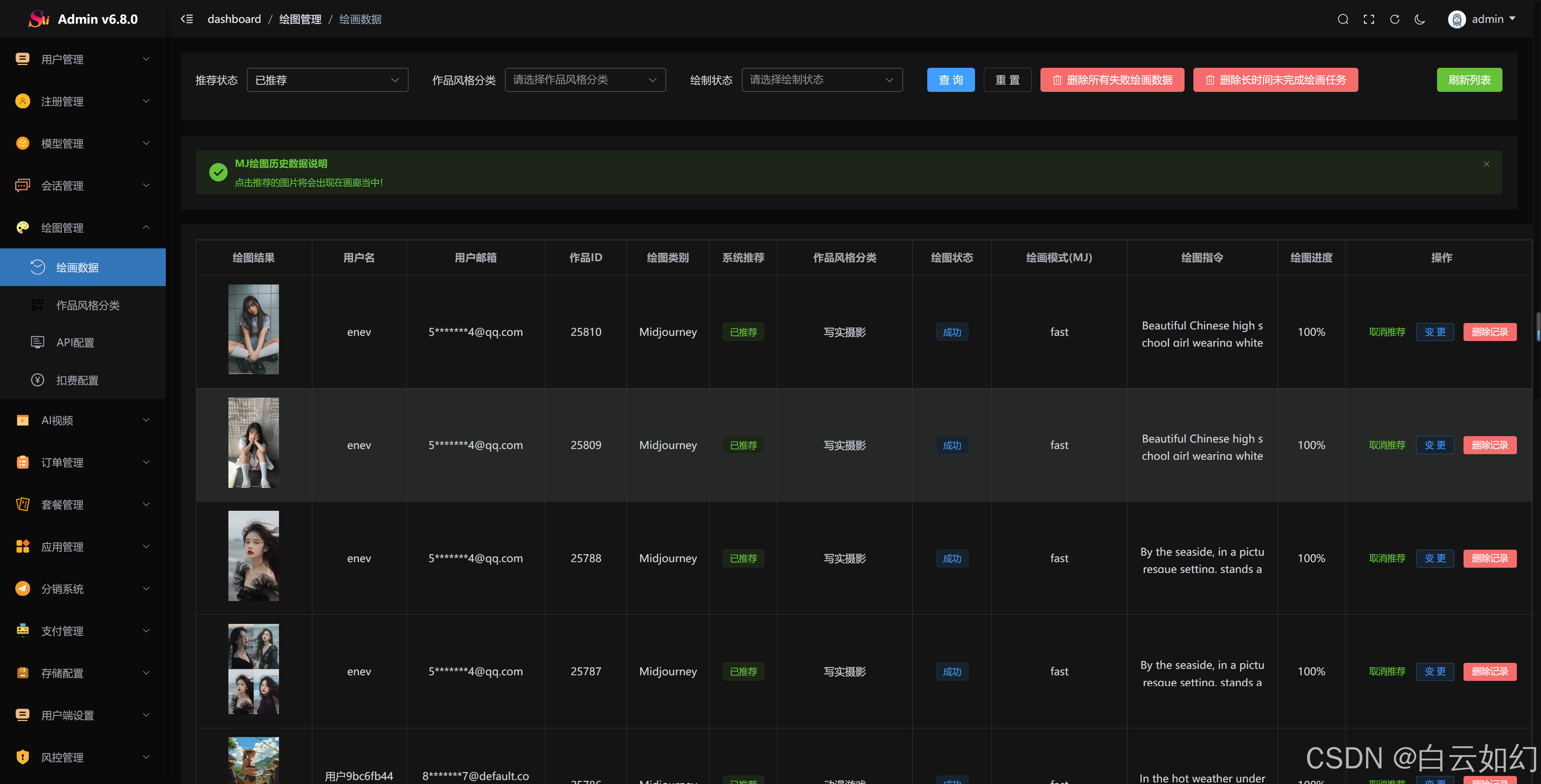 AI画廊广场:系统推荐开放系统;支持绘画作品分类展示。