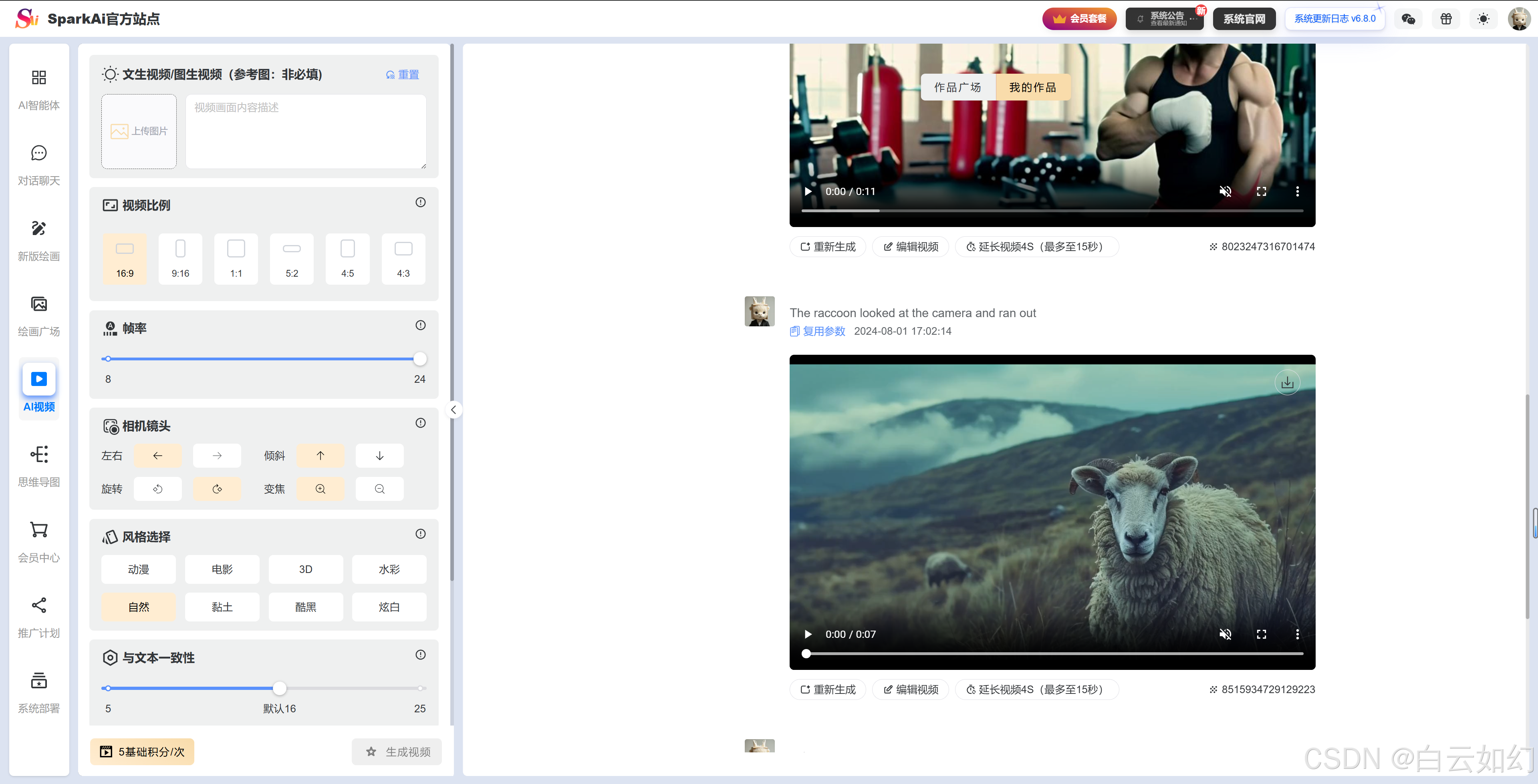 独立AI视频生成功能:支持文生视频/图生视频(PIka AI视频)。