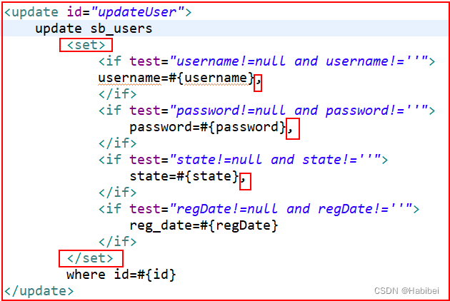 set标签代替sql中的set关键字,可以把set语句后多余的逗号干掉!