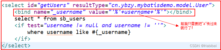 调用getUsers方法的时候,我们可不可以只传入“a”呢?bind标签就可以帮我们实现