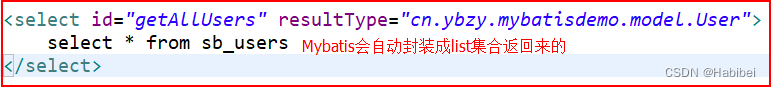 select标签里的resultType类型设置为List集合里的元素类型