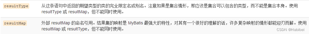 手册里resultType和resultMap介绍有点模糊,说清楚了resultType是期望的返回的类型,集合的话是集合包含的类型,不是集合本身,且这两个不能同时使用,resultMap没说清楚,这里我们明确一下。