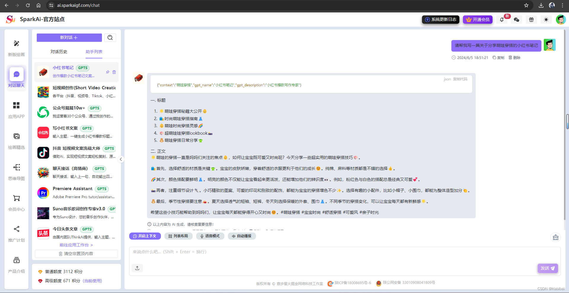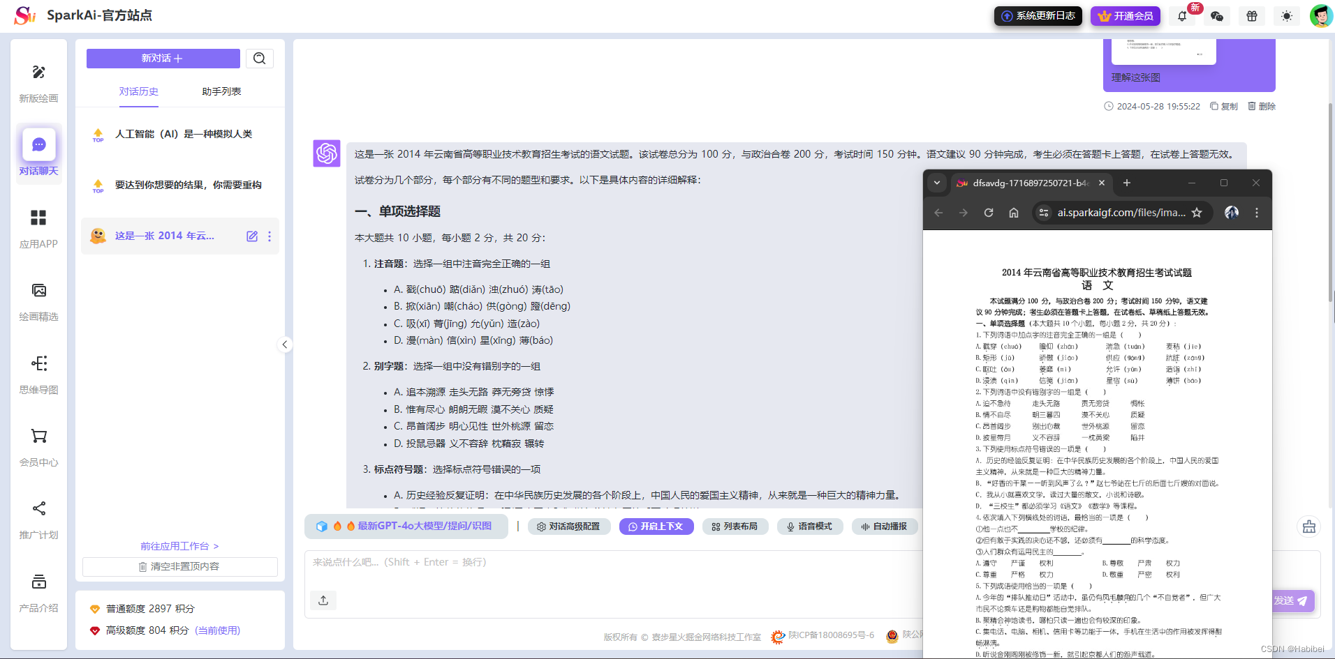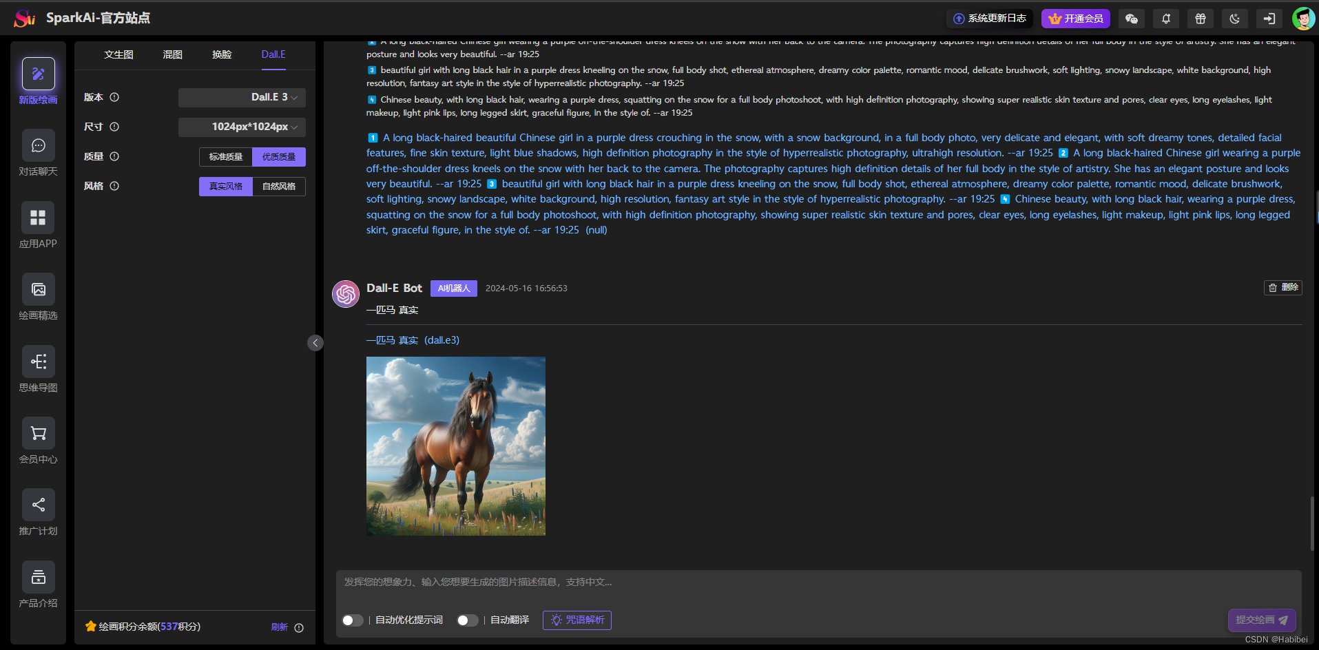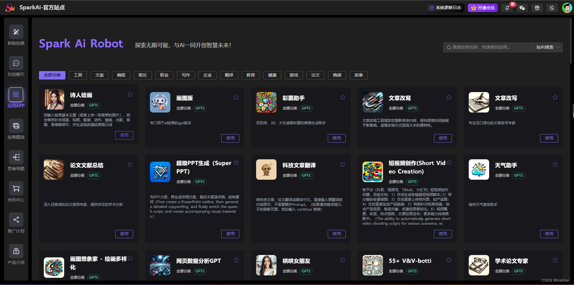 SparkAi创作系统是一款基于ChatGPT和Midjourney开发的智能问答和绘画系统,提供一站式 AI B/C 端解决方案,涵盖AI大模型提问、AI绘画、文档分析、图像识别和理解、TTS & 语音识别、AI换脸等多项功能。支持GPTs应用和Prompt自定义预设应用,配备插件系统,并即将推出AI视频生成和AI音乐生成功能。该系统兼容OpenAI-GPT全模型及国内所有AI模型,具备GPT-4大模型支持、联网提问、DALL-E3文本生成图像、GPT4-All联网搜索模型、思维导图、会员套餐、分销系统以及Midjourney绘画动态全功能等,提供AI换脸、图像混合、局部编辑重绘等强大功能,为用户带来丰富的智能创作和互动体验。