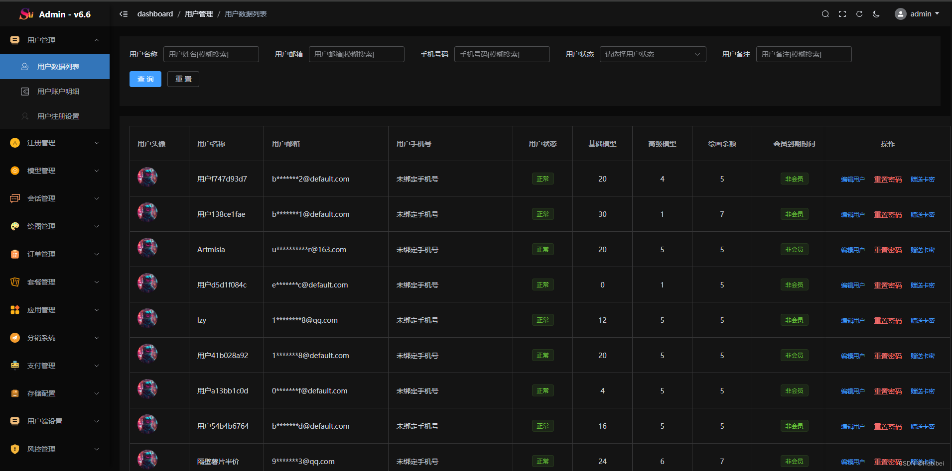 - 📡 管理端支持超管和普通演示账户用于分销系统、普通账号仅可读权限