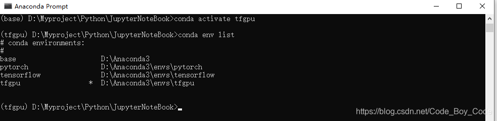 激活安装TensorFlow的那个环境,使用 命令 conda activate tfgpu (tfgpu 为你的Python环境)