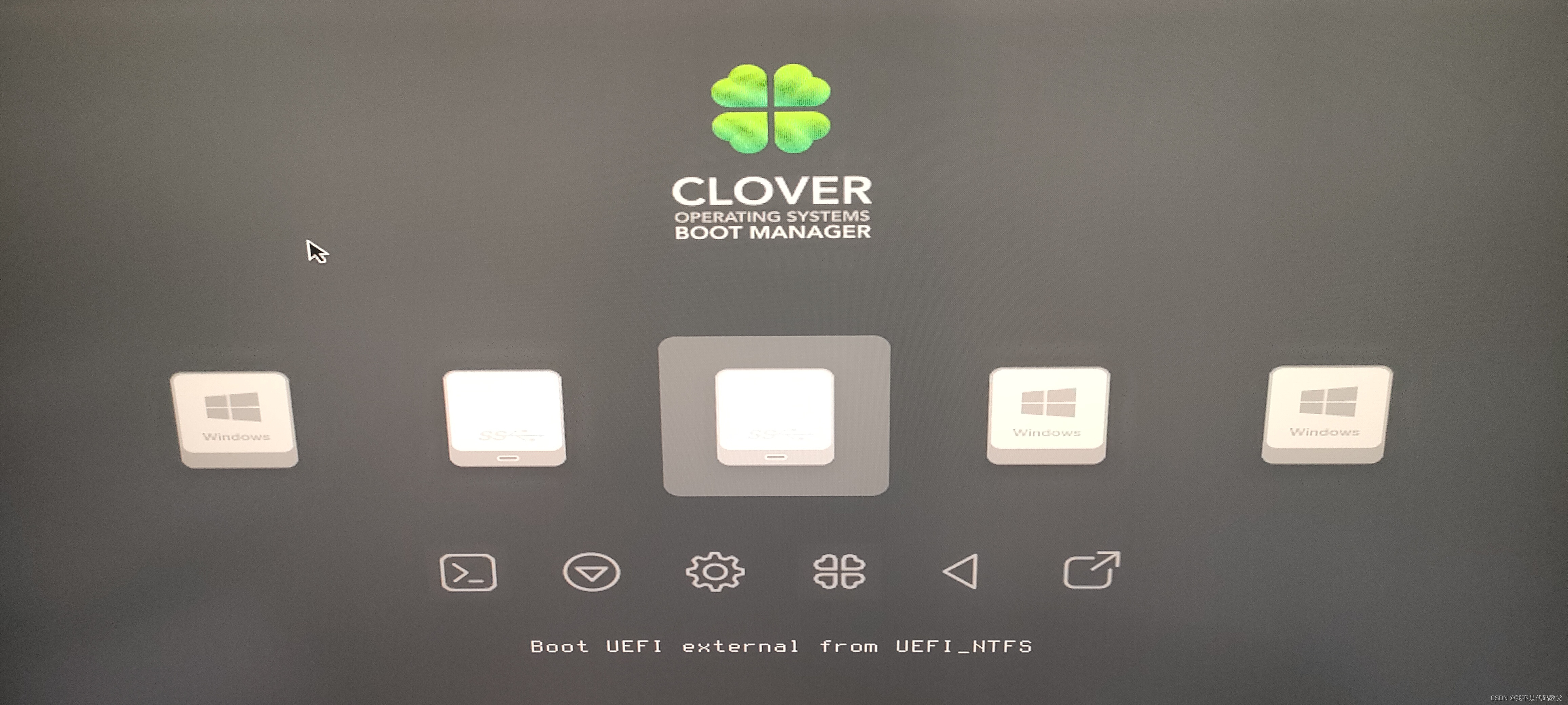 1> 比如你是用U盘安装系统并且用rufus工具制作的. 那么U盘会被分出一个卷名为:UEFI_NTFS。那么Clover会把盘符显示为:Boot UEFI external from UEFI_NTFS