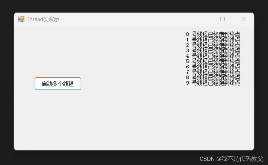 lb_WaitInfo.Text += (Environment.NewLine + string.Format("{0} 号线程已经跑到终点.", int_param_ThreadIndex));